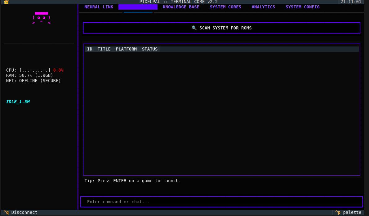 | Tags | ai-assistant, artificial-intelligence, desktop-app, Emulator, game-recommendations, game-tracker, gaming-companion, linux, retroarch, retro-gaming |